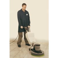 Supplied with this machine is a drive pad and scrubbing brush. Ideal for marble or tiled floors amongst others a rotary floor cleaner uses a rotating cleaning brush or pad to clean the floor with the machine being pushed along by the operator.